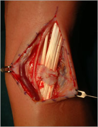 L'intervento chirurgico apre la guaina sopra i tendini infiammati. (Ramo